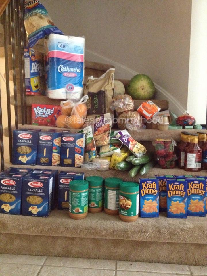 In the photo above, I have 10 boxes of pasta (price matched to $0.99 each, with 10 $0.75 coupons; 8 bbq sauce (price matched to $0.50/each) 6 Kraft Dinner (price matched to $0.50/each) and 4 kraft peanut butter (price matched to 2.97 each) These are all items that I stocked up on; I won't need to buy more of these until mid fall.